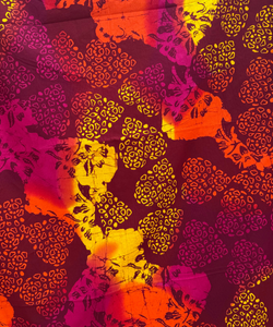 ผ้าคอตตอนแท้ 100%แบบนุ่ม เป็นกระบวนการปาดสีหลายสีมีการแทรกปาเต๊ะลงในลวดลาย มีลายดอกชบาลายหัวใจ